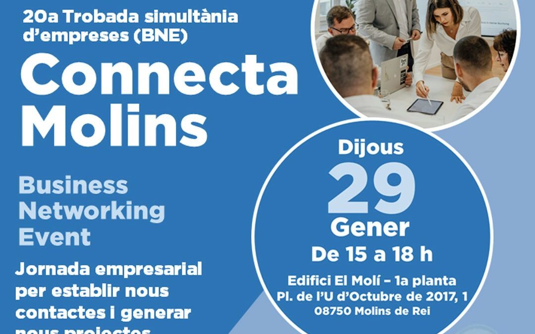 | Comencem a preparar el 2026! Fira de la Candelera Gener 2026 175º Edició Et convidem a participar i comprovar-ho a: CONNECTA MOLINS (de 15:00h a 18:00h) Dijous 29 de gener de 2026 Edifici el Molí, Plaça de l’U d’octubre 2017 MOLINS DE REI. 1er gettingcontacts del 2026! Jornada empresarial: Ponència + Networking amb empreses i professionals per engegar nous projectes. * Reunions gettingcontacts amb agenda personal. Cada participant farà 6 reunions amb agenda + reunions lliures. Per participar-hi pots fer la teva preinscripció al web www.espaiempresa.cat, Important: Aforament limitat, data màxima d’inscripció 25 gener 2026. Agraïm molt el teu interès i la participació de la teva empresa. Per què és Quality networking : 100% Professional Inscripció i comprovació dels perfils dels participants. Accès al llistat d’empreses amb les seves dades. Agenda personal 48 hores abans. Màxima productivitat fins a 15 reunions en un gettingcontacts. Agenda personal de 6 reunions: Segons la metodologia gettingcontacts en reunions breus creuades d’empresàries/s per fer connexions professionals qualitativess en una sola jornada i endegar nous projectes. |