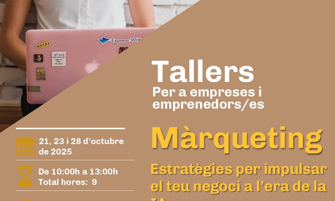 L’objectiu d’aquest taller és oferir als participants el marc conceptual i les directrius bàsiques essencials per aprendre com definir un pla de màrqueting que s’ajusti a les necessitats del seu negoci pas a pas, i de quina manera es pot recolzar mitjançant les eines que la IA pot aportar actualment.